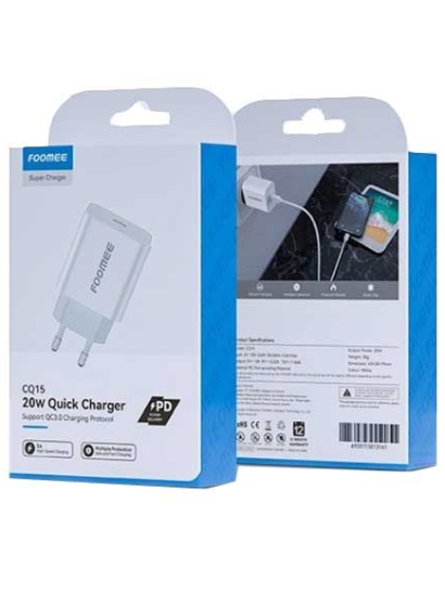 TRAVEL CHARGER FOOMEE CQ15 WHITE